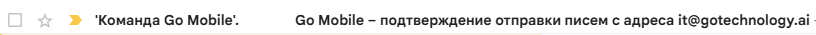 Проверяем почту, туда отправлено такое письмо:
