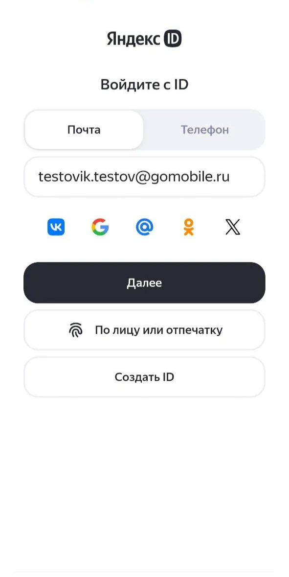 После установки из Google Play/RuStore/AppGallery и запуска приложения, тебя встретит экран входа, похожий на экран входа в веб или десктопной версиях. Сначала надо будет ввести свою почту.