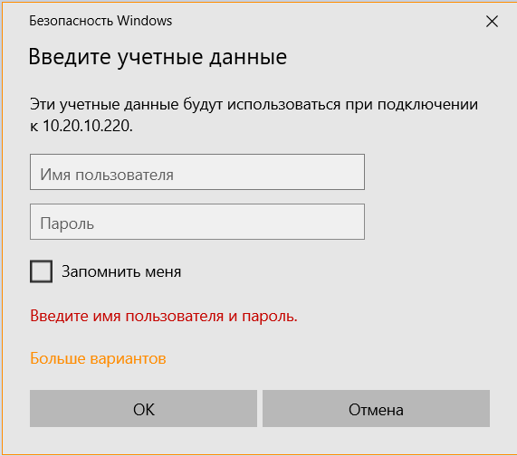 Открывается окно, где нам нужно ввести данные от учётной записи компьютера-хоста (в какую учётную запись Вы заходите и какой пароль вводите, если вдруг сели за свой рабочий комп физически).