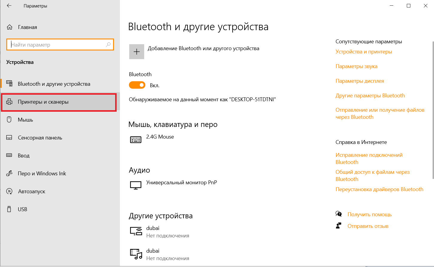 4. Дальше кликаем на "Принтеры и сканеры":