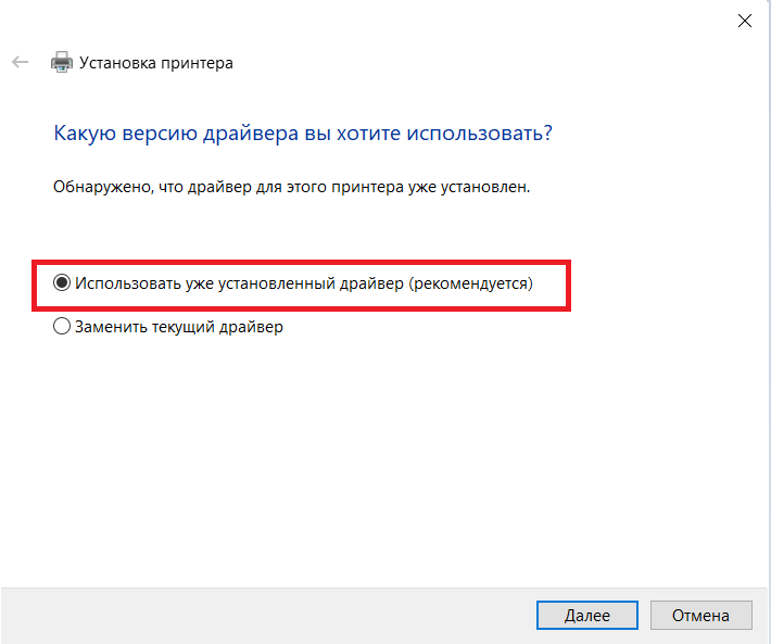 9. Дальше компьютер опросит принтер, и подцепит драйвера сам (если этого не произошло и вы не видите следующую картинку, вам поможет эта страница), оставляем без изменений, нажимаем "Далее":